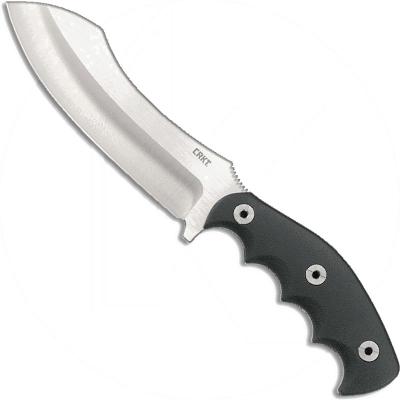 CRKT Catchall Knife, 5.51" 2 tone 8Cr13MoV stainless steel sheepfoot fixed blade; full tang construction, black GRN scales with rubber overlay. Polypropylene sheath, 10.25" overall.