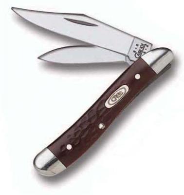 Case Peanut Knife, clip and pen blades, Jigged Brown Synthetic handle, 2 7/8" closed.