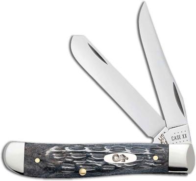 (6207CV) Case Mini Trapper Knife, chrome vanadium steel clip and spey blades; Pocket Worn Gray Bone handle with Case Oval Script Shield and nickel silver bolsters, 3 1/2" closed. Made in the USA.