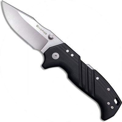 Cold Steel Engage Knife, 3.5" satin S35VN stainless steel clip point blade with dual thumb studs; black GFN handle with Atlas Lock, lanyard hole and reversible deep carry pocket clip, 4 11/16" closed. Made in Taiwan.