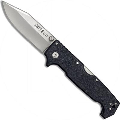 Cold Steel SR1 Lite Knife, 4" 8Cr13MoV stainless steel clip point blade with dual thumb studs; slim black Griv-Ex handle with Tri-Ad Lock, lanyard hole and steel pocket clip, 5 3/8" closed. Made in Taiwan.