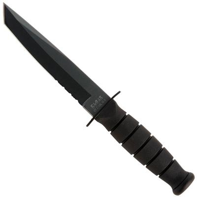 KA-BAR Knives, KABAR Short Black Tanto Knife, 5 1/4" part serrated black tanto blade, black Kraton handle, 9 3/8" overall.